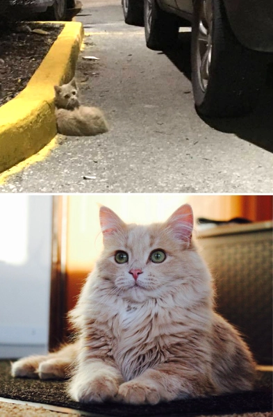 Tiny, three month-old Mango was photographed lying up against a curb in a hotel parking lot in St James. She had been seen eating discarded pizza crusts under cars. One of our volunteer trappers rescued her. Friendly, but dehydrated and underweight, she made a swift recovery and became a stunning show-worthy cat. Her adoptive mom even made an Instagram account for her. Lots of fans!